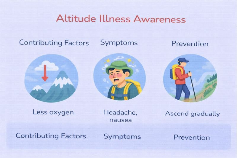 This article is intended for general first aid and outdoor safety education in Canada. It promotes awareness and prevention of altitude illness but does not replace medical evaluation or emergency care.