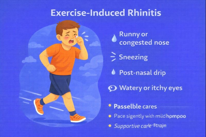 Exercise-induced rhinitis refers to temporary nasal irritation that appears during or after physical activity. It commonly involves a runny or congested nose, sneezing, watery or itchy eyes, and post-nasal drip. Unlike a cold, symptoms are often linked to movement, breathing rate, and environmental exposure rather than infection. Both people with allergies and those without known sensitivities can notice these effects.
