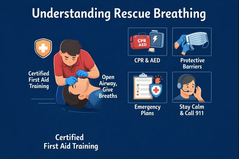 In workplaces, fitness centres, childcare settings, public spaces, and community programs, trained bystanders may encounter someone who collapses or becomes unresponsive. Recognizing when breathing has stopped and activating the emergency response system quickly can influence outcomes. Rescue breathing and CPR are part of standardized training delivered by recognized first aid organizations.