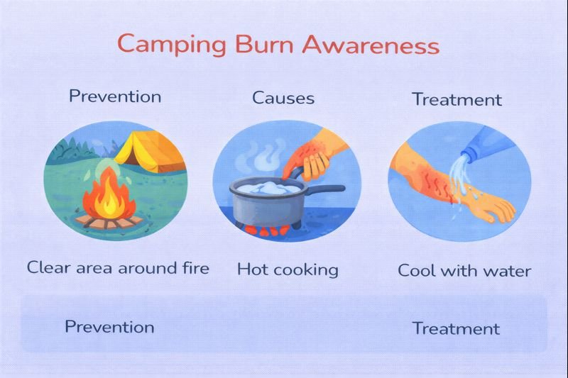 This article is intended for general first aid and outdoor safety education in Canada. It promotes burn awareness and preparedness while camping but does not replace professional medical assessment or emergency care.