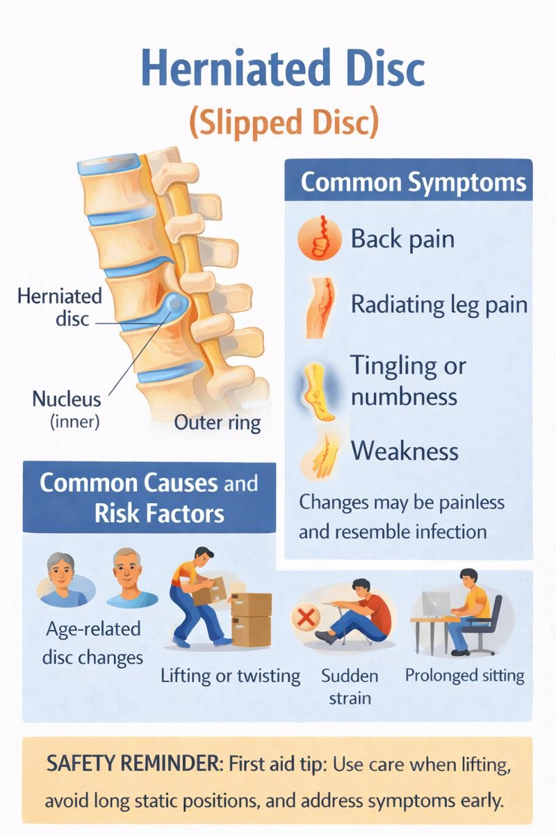 Herniated (Slipped) Disc: Symptoms, Causes, and First Aid Awareness in Canada