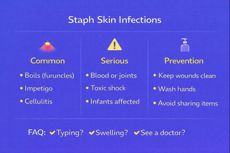 This article provides general awareness of staph skin infections for public health and first aid education. Diagnosis and treatment decisions are made by healthcare professionals.
