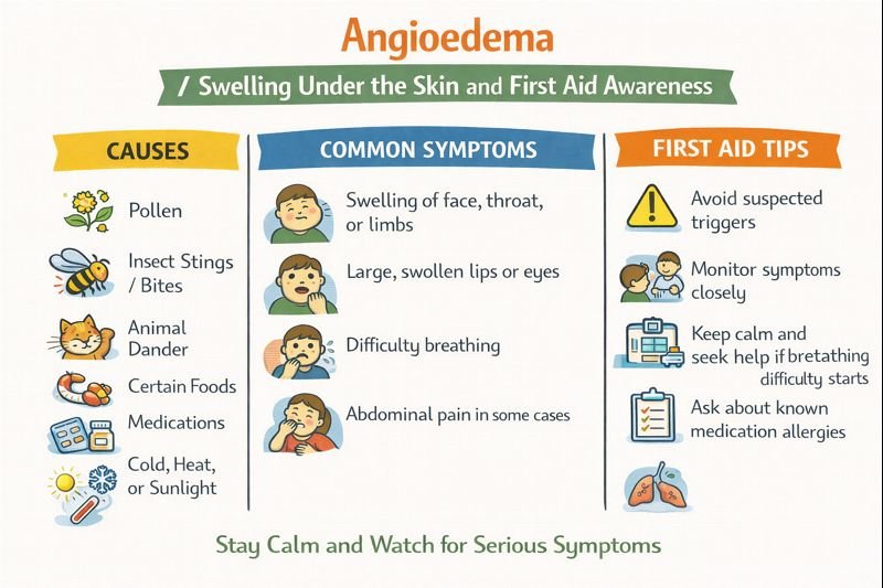 This information is provided for general public education and first aid awareness. Angioedema can vary in cause and severity, and understanding early warning signs supports calm, informed responses in everyday situations.