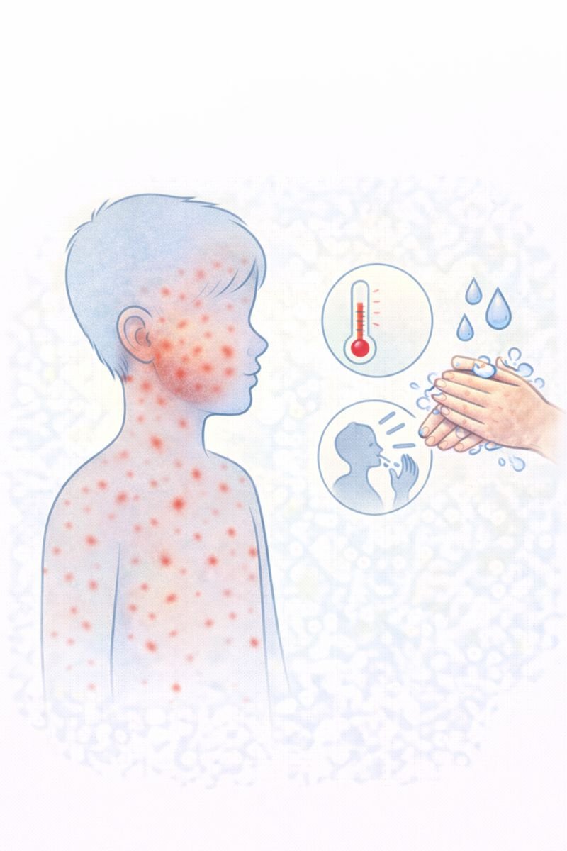 Measles is a contagious viral infection that can affect anyone who has not been vaccinated or previously infected. It is more common in young children, although outbreaks can occur in teens and adults as well. Most cases clear within 7–10 days.